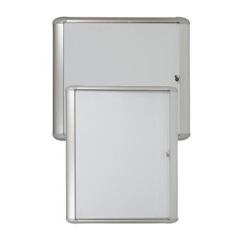 - Magnetické vitríny so zaoblenými hranami a rámom vyrobeným z eloxovaného hliníka vhodné do interiéru.