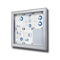 Magnetické vitríny so strieborným eloxovaným hliníkovým rámom vhodné do exteriéru. Čelné dvere s gumovým tesnením zaisťujú vodoodolnosť. Tvrdené ESG sklo so šírkou 4 mm ESG Sklo: Ide o špeciálne bezpečnostné tvrdené sklo, ktoré sa používa napr. ako výplň dverí alebo okien automobilov.