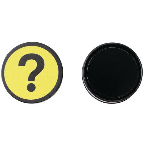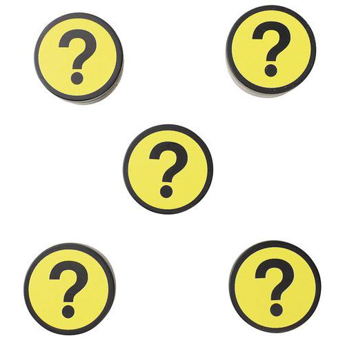 - Okrúhle magnety na pripevnenie dokumentov na kovové povrchy. Jasné farby so symbolom otáznika dodajú vašim tabuliam hravý nádych.