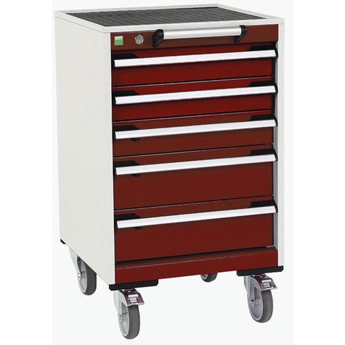 Mobilná zásuvková skriňa Bott Cubio, 88,5 x 52,5 x 52,5 cm, 5 zásuviek, rohož, šedá-červená Mobilná zásuvková skriňa Bott Cubio, 88,5 x 52,5 x 52,5 cm, 5 zásuviek, rohož, šedá-červená