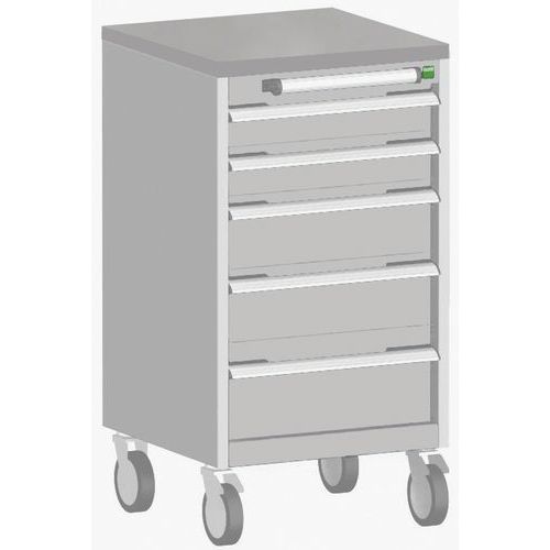 Mobilná zásuvková skriňa Bott Cubio, 99 x 52,5 x 52,5 cm, 5 zásuviek, multiplex/linoleum/rohož