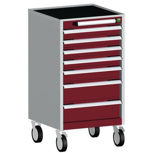 Mobilná zásuvková skriňa Bott Cubio, 98,5 x 52,5 x 52,5 cm, 7 zásuviek, rohož, šedá-červená Mobilná zásuvková skriňa Bott Cubio, 98,5 x 52,5 x 52,5 cm, 7 zásuviek, rohož, šedá-červená