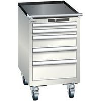 Mobilné dielenské zásuvkové skrine Lista, 4 alebo 5 zásuviek. Rebrovaná protišmyková podložka na vrchu skrine. Pohyb umožňujú 4 kolieska a madlo na manipuláciu. Zámok na kľúč. Optimálne využitie vďaka plnému výsuvu a optimálnej výške čela zásuviek. Vynikajúca ochrana proti prachu, kvapalinám a mechanickému opotrebovaniu vďaka uzavretému rámu s povrchom odolným proti nárazom a oderu. Systém proti prevráteniu, ktorý zabraňuje pádu zásuvky, a individuálne zamykanie zásuviek. Ochrana proti korózii elektroforetickým imerzným lakovaním a striekaním. Optimalizované úložné priestory a organizácie vďaka deliacemu materiálu LISTA prispôsobenému každému použitiu a zásuvkám vybaveným drážkami a perforáciami. Profesionálne popisovanie s popisovacím softvérom LISTA Script a výklopnou úchytkou na vkladanie štítkov. Dokonale tichý pohyb vďaka sane bez priečnika. Deliaci materiál do zásuviek nie je súčasťou dodávky. Nutné dokúpiť zvlášť. Max. zaťaženie (kg) : 75 kg
