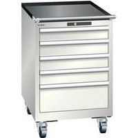 Mobilná dielenská zásuvková skriňa Lista, 5 zásuviek: 4x100mm + 1x200mm, svetlo šedá Mobilná dielenská zásuvková skriňa Lista, 5 zásuviek: 4x100mm + 1x200mm, svetlo šedá