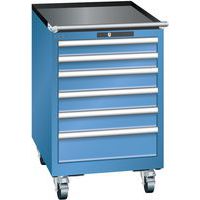 Mobilná dielenská zásuvková skriňa Lista, 6 zásuviek: 2x75mm + 3x100mm + 1x150mm, modrá Mobilná dielenská zásuvková skriňa Lista, 6 zásuviek: 2x75mm + 3x100mm + 1x150mm, modrá
