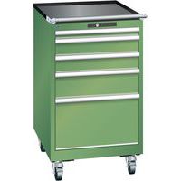 Mobilná dielenská zásuvková skriňa LISTA, 5 zásuviek = 1x50 + 2x100 + 1x150 + 1x300mm, 564x725x990mm, zelená