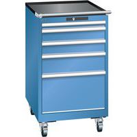 Mobilná dielenská zásuvková skriňa LISTA, 5 zásuviek = 1x50 + 2x100 + 1x150 + 1x300mm, 564x725x990mm, modrá
