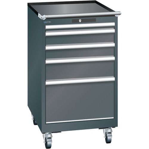 Mobilná dielenská zásuvková skriňa LISTA, 5 zásuviek = 1x50 + 2x100 + 1x150 + 1x300mm, 564x725x990mm, čierna