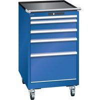 Mobilná dielenská zásuvková skriňa LISTA, 5 zásuviek = 1x50 + 2x100 + 1x150 + 1x300mm, 564x725x990mm