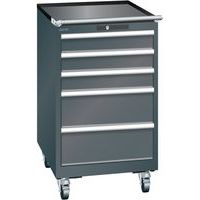 Mobilná dielenská zásuvková skriňa LISTA, 5 zásuviek = 3x100 + 2x200mm, 564x725x990mm, čierna