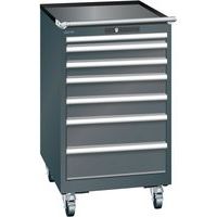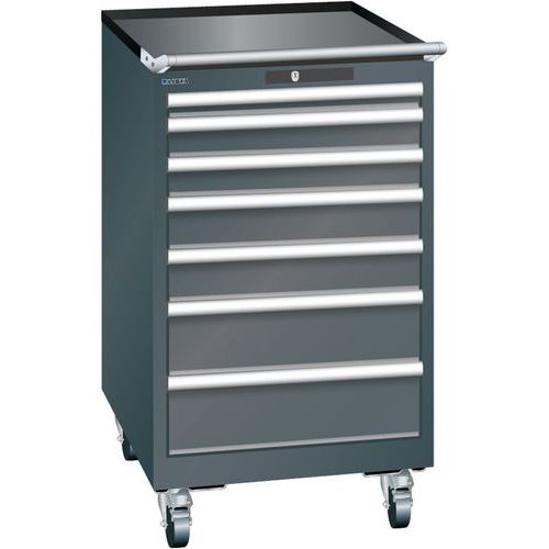 Mobilná dielenská zásuvková skriňa LISTA, 7 zásuviek = 1x50 + 2x75 + 2x100 + 2x150mm, 564x725x990mm, čierna
