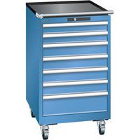 Mobilná dielenská zásuvková skriňa LISTA, 7 zásuviek = 2x75 + 4x100 + 1x150mm, 564x725x990mm, modrá
