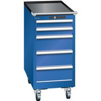 Mobilná dielenská zásuvková skriňa Lista, 5 zásuviek, 411x725x890mm, fluorescenčná modrá Mobilná dielenská zásuvková skriňa Lista, 5 zásuviek, 411x725x890mm, fluorescenčná modrá