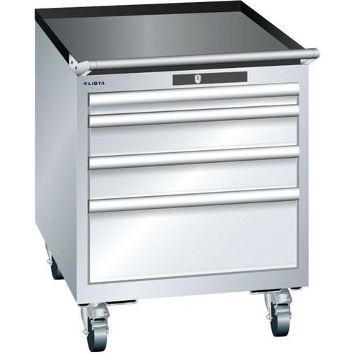 Mobilná dielenská zásuvková skriňa LISTA, 564x725x723mm, 4 zásuvky, sivá