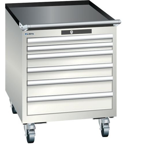 Mobilná dielenská zásuvková skriňa LISTA, 564x725x723mm, 6 zásuviek, svetlo šedá