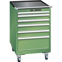 Mobilná dielenská zásuvková skriňa LISTA, 564x725x890mm, 6 zásuviek, zelená