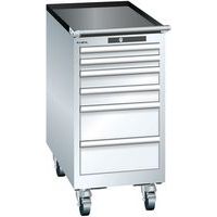 Rebrovaná protišmyková podložka na vrchu skrine. Pohyb umožňujú 4 kolieska a madlo na manipuláciu. Zámok na kľúč. Optimálne využitie vďaka plnému výsuvu a optimálnej výške čela zásuviek. Vynikajúca ochrana proti prachu, kvapalinám a mechanickému opotrebovaniu vďaka uzavretému rámu s povrchom odolným proti nárazom a oderu. Systém proti prevráteniu, ktorý zabraňuje pádu zásuvky, a individuálne zamykanie zásuviek. Ochrana proti korózii elektroforetickým imerzným lakovaním a striekaním. Optimalizované úložné priestory a organizácie vďaka deliacemu materiálu LISTA prispôsobenému každému použitiu a zásuvkám vybaveným drážkami a perforáciami. Profesionálne popisovanie s popisovacím softvérom LISTA Script a výklopnou úchytkou na vkladanie štítkov. Dokonale tichý pohyb vďaka sane bez priečnika. Deliaci materiál do zásuviek nie je súčasťou dodávky. Nutné dokúpiť zvlášť.