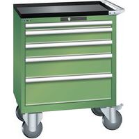 Mobilná dielenská zásuvková skriňa LISTA, 5 zásuviek = 1x50 + 2x100 + 1x150 + 1x200mm, 717x572x962mm, zelená