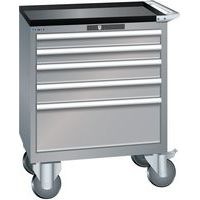 Mobilná dielenská zásuvková skriňa LISTA, 5 zásuviek = 2x75 + 2x100 + 1x250mm, 717x572x962mm, šedá/strieborná