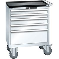 Mobilná dielenská zásuvková skriňa LISTA, 5 zásuviek = 2x75 + 2x100 + 1x250mm, 717x572x962mm, biela