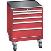 Mobilná dielenská zásuvková skriňa LISTA, 717x725x962mm, 5 zásuviek, červená