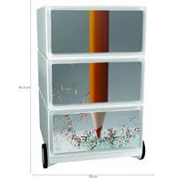 Pojazdné kontajnery s tromi zásuvkami na ukladanie kancelárskych pomôcok. Predná plocha zásuviek z ABS plastu. Pojazdnosť zaisťujú 4 kolieska, z ktorých dve sú otočné. Užitočné rozmery zásuvky sú 32,5 x 13,3 x 40,5 cm. Záruka výrobcu pre zákazníka : 10 rokov