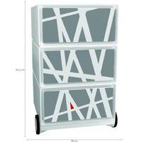 Pojazdné kontajnery s tromi zásuvkami na ukladanie kancelárskych pomôcok. Predná plocha zásuviek z ABS plastu. Pojazdnosť zaisťujú 4 kolieska, z ktorých dve sú otočné. Užitočné rozmery zásuvky sú 32,5 x 13,3 x 40,5 cm. Záruka výrobcu pre zákazníka : 10 rokov
