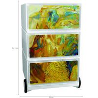 Mobilné dizajnové kontajnery so štyrmi zásuvkami na ukladanie kancelárskych pomôcok. Predná plocha zásuviek z ABS plastu s foto vzorom. Pojazdnosť zaisťujú 4 kolieska, z ktorých dve sú otočné. Užitočné rozmery zásuvky sú 32,5 x 13,3 x 40,5 cm.