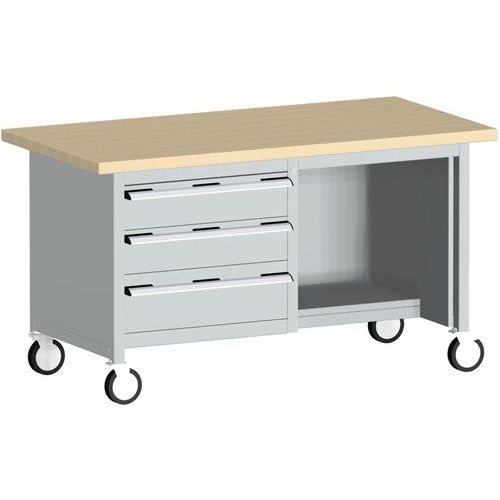 Mobilný dielenský stôl Bott Cubio Storage, 84 x 150 x 75 cm, 3 zásuvky, police, multiplex/linoleum