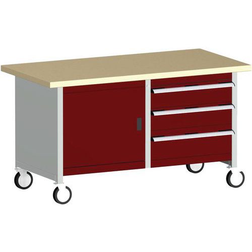 Mobilný dielenský stôl Bott Cubio Storage, 84 x 150 x 75 cm, 3 zásuvky, skrinka, multiplex/linoleum