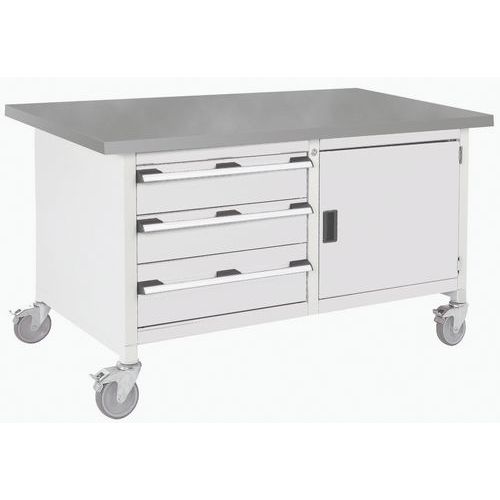Mobilný dielenský stôl Bott Cubio Storage, 84 x 150 x 75 cm, 3 zásuvky, skrinka, multiplex/linoleum