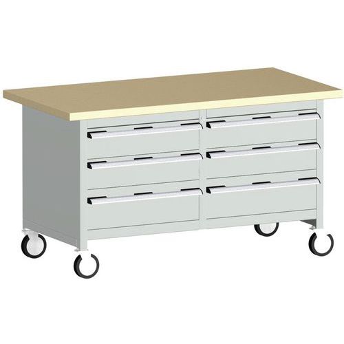Mobilný dielenský stôl Bott Cubio Storage, 84 x 150 x 75 cm, 6 zásuviek, multiplex/linoleum