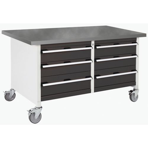 Mobilný dielenský stôl Bott Cubio Storage, 84 x 150 x 75 cm, 6 zásuviek, multiplex/linoleum