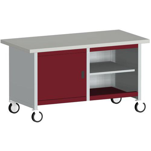 Mobilný dielenský stôl Bott Cubio Storage, 84 x 150 x 75 cm, skrinka, otvorený priestor s policou, linoleum Mobilný dielenský stôl Bott Cubio Storage, 84 x 150 x 75 cm, skrinka, otvorený priestor s policou, linoleum
