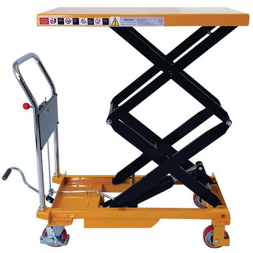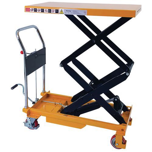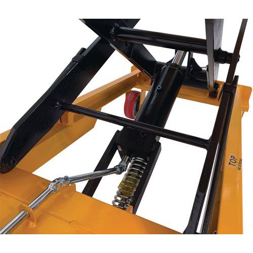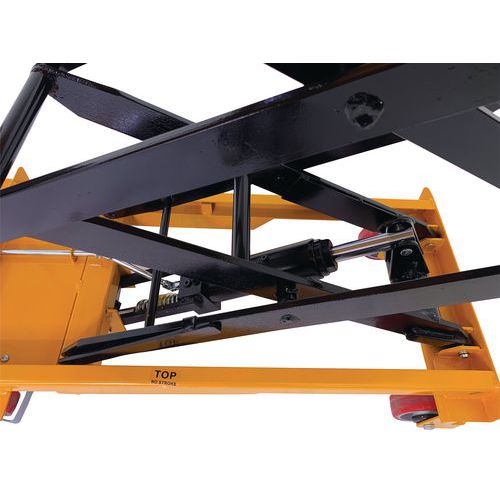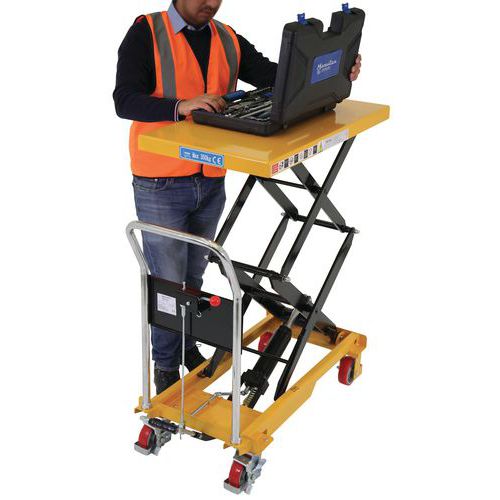 - Zdvíhací hydraulický stôl s obdĺžnikovou doskou.