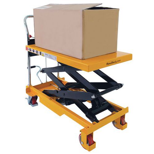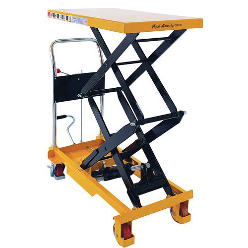 Mobilný hydraulický zdvíhací stôl Manutan Expert, do 350 kg, doska 90,5 x 50 cm