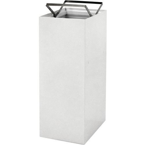 Veľmi robustný modulárny odpadkový kôš z práškovo lakovanej ocele, vybavený držiakom na vrecia a nastaviteľnými nožičkami.