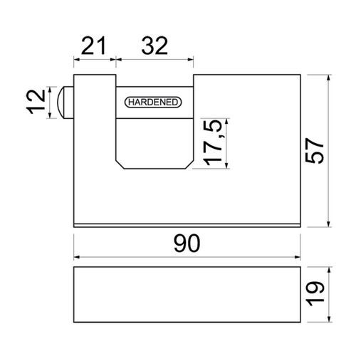 Mosadzný visiaci zámok s kartáčovaným povrchom, priemer strmeňa 12 mm, výška 17,5 mm, mosadz