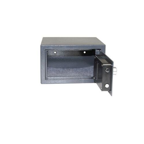 - Nábytkový trezor s elektronickým zámkom, číselnou klávesnicou a páčkou na otvorenie.
