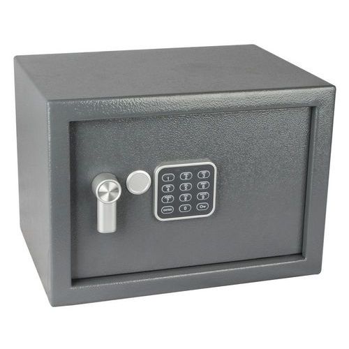 - Nábytkový trezor s elektronickým zámkom, číselnou klávesnicou a páčkou na otvorenie.