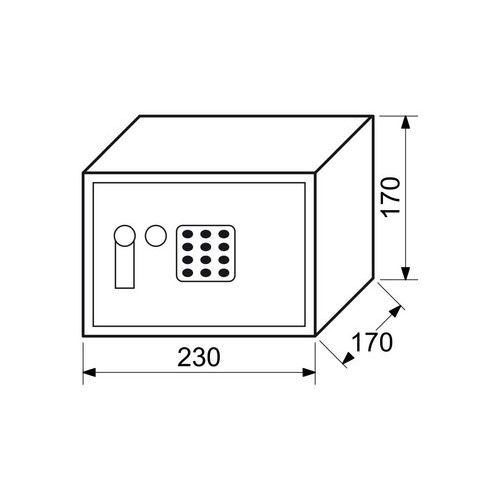 Nábytkový trezor s elektronickým zámkom, číselnou klávesnicou a otváracou pákou, 170 x 230 x 170 mm