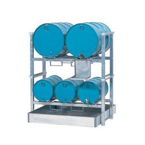- Podpera dvoch sudov na skladovanie v horizontálnej polohe s retenčnou nádobou.