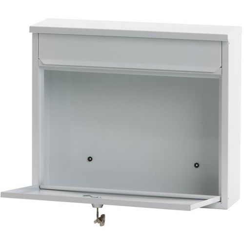- Kovová nástenná poštová schránka s klapkou a uzamykateľnými prístupovými dvierkami na prednej strane. Otvor: 32 x 4 cm.