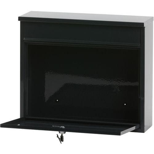 - Kovová nástenná poštová schránka s klapkou a uzamykateľnými prístupovými dvierkami na prednej strane. Otvor: 32 x 4 cm.