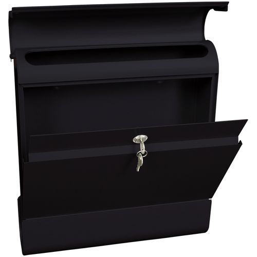 - Nástenná poštová schránka z práškovo lakovanej pozinkovanej ocele, vybavená cylindrickým zámkom.