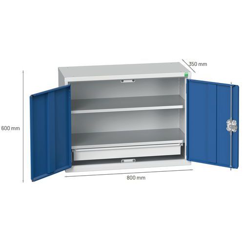 Nástenná skrinka Bott Verso, 60 x 80 x 35 cm, 2 police, 1 polica, šedá-modrá