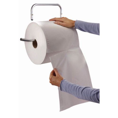 - Nástenný držiak na priemyselné papierové utierky v kotúčoch.