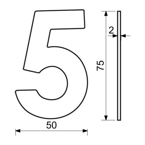 Nerezové číslo v 2D prevedení, výška 75 mm, znak 5