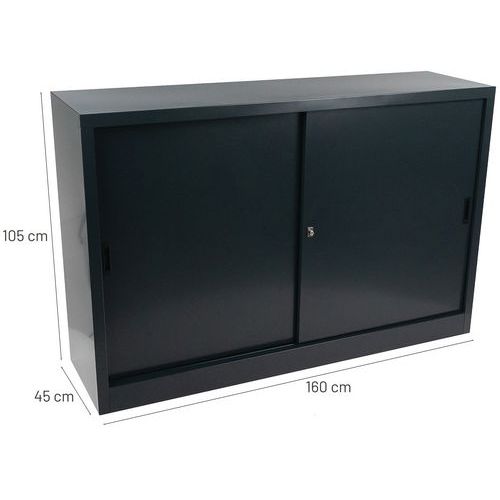 Nízka kovová spisová skriňa Manutan Expert s posuvnými dverami, 160 x 105 x 45 cm, antracit