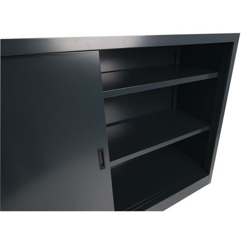 Nízka kovová spisová skriňa Manutan Expert s posuvnými dverami, 180 x 105 x 45 cm, antracit
